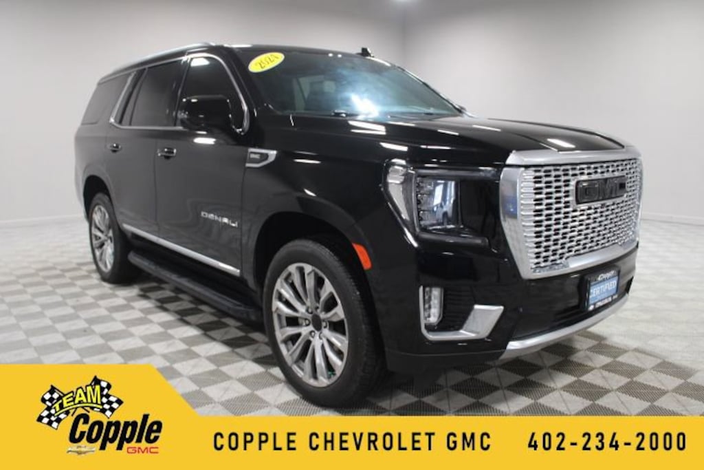 THIS VEHICLE COMES WITH THE FOLLOWING FEATURES AND OPTIONS : ** License Plate Front Mounting Package, Max Trailering Package, Preferred Equipment Group 5SA (12-Way Power Seat Adjusters, 15 Diagonal Multi-Color Head-Up Display, 2 Presets For Outside Rearview Mirrors, 3rd Row 60/40 Power-Folding Split-Bench Seat, Adaptive Cruise Control, Bose 14-Speaker Surround w/CenterPoint, Bright Front & Rear Door Sill Plates, Chrome Door Handles w/Body-Color Strip, Dual Exhaust System, Enhanced Automatic Emergency Braking, Floor Console, Galvano Bodyside Moldings, Hands-Free Power Programmable Rear Liftgate, HD Surround Vision, Heated 2nd Row Outboard Position Seats, Heated Driver & Front Passenger Seats, Heated Steering Wheel, Hill Descent Control, Inside Rear-View Auto-Dimming Mirror, Outside Heated Power-Adjustable Mirrors, Perforated Heated & Ventilated Dr & Frt Pass Seats, Power Release 2nd Row Bucket Seats, Power Tilt & Telescopic Steering Column, Rear Pedestrian Alert, Safety Alert Seat, Universal Home Remote, and Wireless Charging), GMC Certified Pre-Owned Certified, 14 Speakers, 3.23 Rear Axle Ratio, 3rd row seats: split-bench, 4-Wheel Disc Brakes, ABS brakes, Adaptive suspension, Air Conditioning, Alloy wheels, AM/FM radio: SiriusXM with 360L, AM/FM Stereo, Apple CarPlay/Android Auto, Auto High-beam Headlights, Auto-dimming door mirrors, Auto-dimming Rear-View mirror, Auto-leveling suspension, Automatic Emergency Braking, Automatic temperature control, Bodyside moldings, Brake assist, Bumpers: body-color, Compass, Delay-off headlights, Driver door bin, Driver vanity mirror, Dual front impact airbags, Dual front side impact airbags, Dual-Pane Panoramic Power Sunroof, Electronic Stability Control, Emergency communication system: OnStar and GMC connected services capable, Extra Capacity Cooling System, Following Distance Indicator, Forward Collision Alert, Four wheel independent suspension, Front & Rear Park Assist, Front anti-roll bar, Front Bucket Seats, Front Center Armrest, Front dual zone A/C, Front fog lights, Front Pedestrian Braking, Front reading lights, Fully automatic headlights, Garage door transmitter, Heads-Up Display, Heated door mirrors, Heated front seats, Heated rear seats, Heated steering wheel, Hitch View, Illuminated entry, Integrated Trailer Brake Controller, IntelliBeam Automatic High Beam On/Off, Lane Change Alert w/Side Blind Zone Alert, Lane Keep Assist w/Lane Departure Warning, Low tire pressure warning, Magnetic Ride Control Suspension, Memory seat, Navigation System, Occupant sensing airbag, Outside temperature display, Overhead airbag, Overhead console, Panic alarm, Passenger door bin, Passenger vanity mirror, Perforated Leather Seating Surfaces, Power door mirrors, Power driver seat, Power Liftgate, Power passenger seat, Power steering, Power windows, Rain sensing wipers, Rear air conditioning, Rear anti-roll bar, Rear Cross Traffic Alert, Rear reading lights, Rear window defroster, Rear window wiper, Remote keyless entry, Roof rack: rails only, Security system, SiriusXM w/360L, Smart Trailer Integration Indicator, Speed control, Speed-sensing steering, Split folding rear seat, Spoiler, Steering wheel memory, Steering
