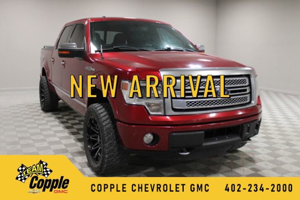 2013 Ford F-150 Platinum 3.5L V6 4WD 6-Speed Automatic ElectronicRecent Arrival!4WD.THIS VEHICLE COMES WITH THE FOLLOWING FEATURES AND OPTIONS : ** Equipment Group 700A, GVWR: 7,350 lbs Payload Package, 4WD, 10 Speakers, 20 Polished Aluminum Wheels, 3.55 Axle Ratio, 4-Wheel Disc Brakes, ABS brakes, Adjustable pedals, Air Conditioning, Alloy wheels, AM/FM radio: SiriusXM, Auto tilt-away steering wheel, Auto-dimming door mirrors, Auto-dimming Rear-View mirror, Automatic temperature control, Black Unique Leather Bucket Seats, Bodyside moldings, Bumpers: body-color, CD player, Compass, Delay-off headlights, Driver door bin, Driver vanity mirror, Dual front impact airbags, Dual front side impact airbags, DVD-Audio, Electronic Stability Control, Exterior Parking Camera Rear, Front anti-roll bar, Front Bucket Seats, Front Center Armrest, Front dual zone A/C, Front fog lights, Front License Plate Bracket, Front reading lights, Front wheel independent suspension, Fully automatic headlights, Garage door transmitter, Heated door mirrors, Heated front seats, Heated rear seats, High-Intensity Discharge Headlights, Illuminated entry, Low tire pressure warning, Memory seat, Navigation, Navigation System, Occupant sensing airbag, Outside temperature display, Overhead airbag, Overhead console, Overhead Console w/Single Storage Bin, Panic alarm, Passenger door bin, Passenger vanity mirror, Pedal memory, Power door mirrors, Power driver seat, Power Moonroof, Power passenger seat, Power steering, Power windows, Premium audio system: Sony, Radio data system, Radio: Sony Single-CD w/HD, Rain sensing wipers, Rear Parking Sensors, Rear reading lights, Rear seat center armrest, Rear step bumper, Rear window defroster, Remote keyless entry, Security system, Speed control, Speed-sensing steering, Split folding rear seat, Spray-In Bed Liner (Pre-Installed), Steering wheel memory, Steering wheel mounted audio controls, SYNC w/MyFord Touch, Tachometer, Telescoping steering wheel, Tilt steering wheel, Traction control, Trailer Brake Controller, Trip computer, Turn signal indicator mirrors, Variably intermittent wipers, and Ventilated front seats.Clean CARFAX.Visit us at www.copplecars.com!